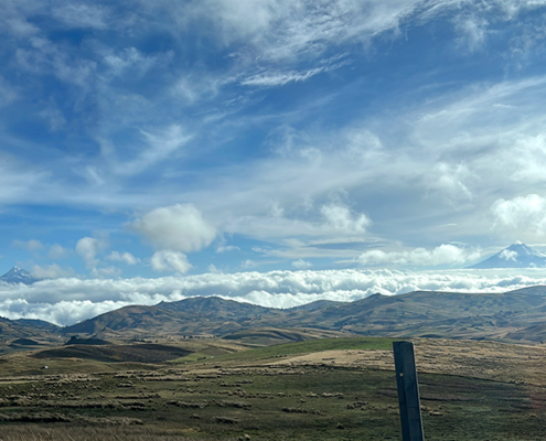 Das Andenhochland Ecuadors hat mich besonders beeindruckt. Frühmorgens auf der Panamericana den Sonnenaufgang zu sehen und wie sich nach und nach die Gipfel der Vulkane durch die Wolkendecke schieben, hatte etwas Majestätisches.