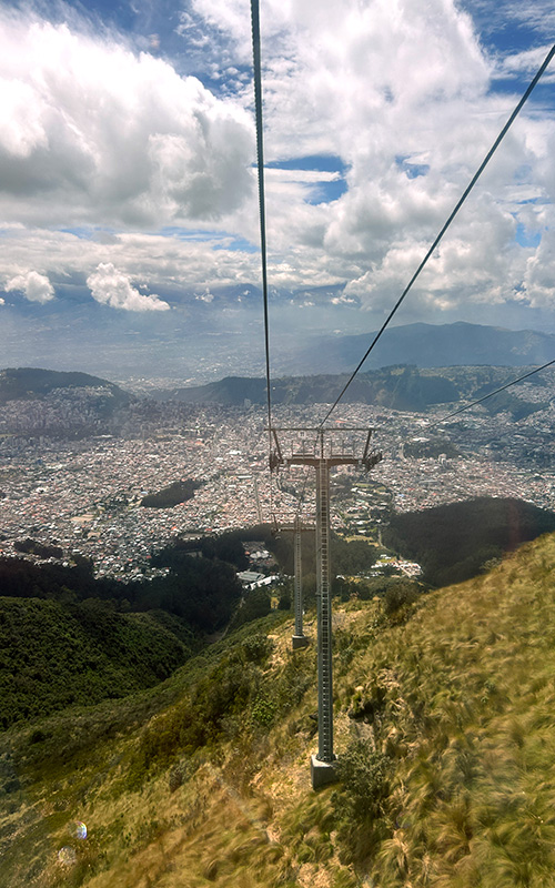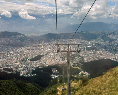 Eine weitere Unternehmung in der Stadt Quito ist die Fahrt mit dem Telefériqo, der Seilbahn, die auf den Hausberg Cruz Loma führt. Ein echtes Erlebnis – je höher sich die Gondel über die Stadt erhebt, desto beeindruckender wird der Blick auf Quito.