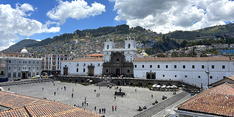 Am ersten Tag nach meiner Ankunft ging es in die Altstadt von Quito. Die koloniale Altstadt mit ihren engen Gassen und historischen Gebäuden ist unglaublich charmant. Besonders beeindruckend sind die vielen Kirchen – einige davon sind im Inneren komplett vergoldet, was wirklich atemberaubend aussieht. In der Kirche „Iglesia La Compañía“ kann man für nur 3 USD Eintritt bis hinauf auf das Dach steigen und von dort einen tollen Blick über die Stadt genießen. Ein perfekter Einstieg in die Reise!