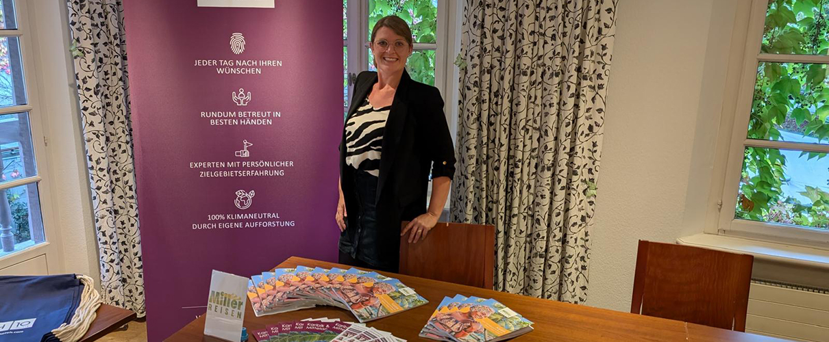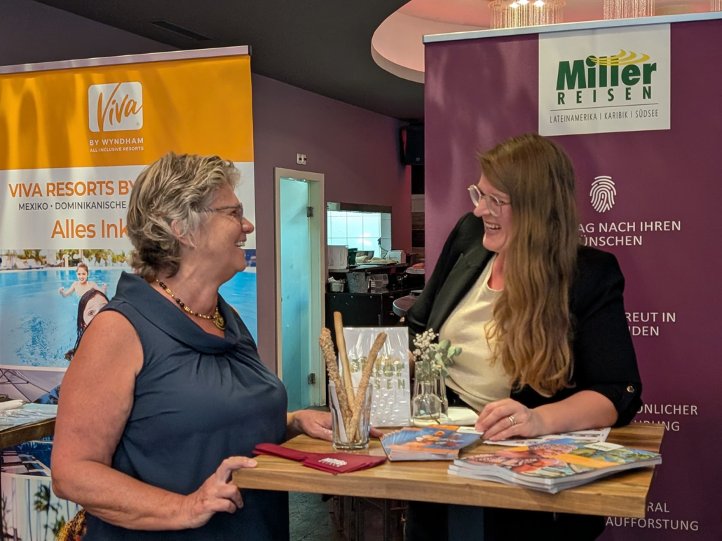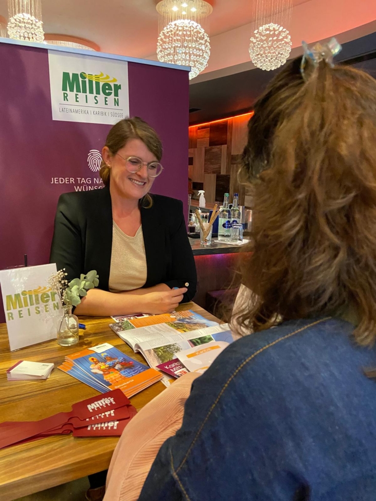 An den Infodesks hatten die Teilnehmer Gelegenheit, sich ausführlich zu informieren und Kontakte zu knüpfen. Auch Miller Reisen war mit einem eigenen Stand vertreten und nutzte die Gelegenheit zum direkten Austausch mit den Partnern.